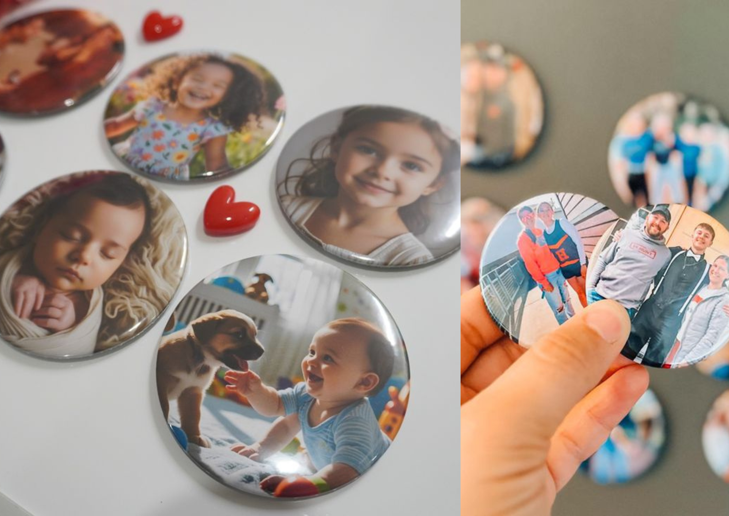 Why pay extra, We customize your designs for free as a badge, keychain or a Fridge Magnet
